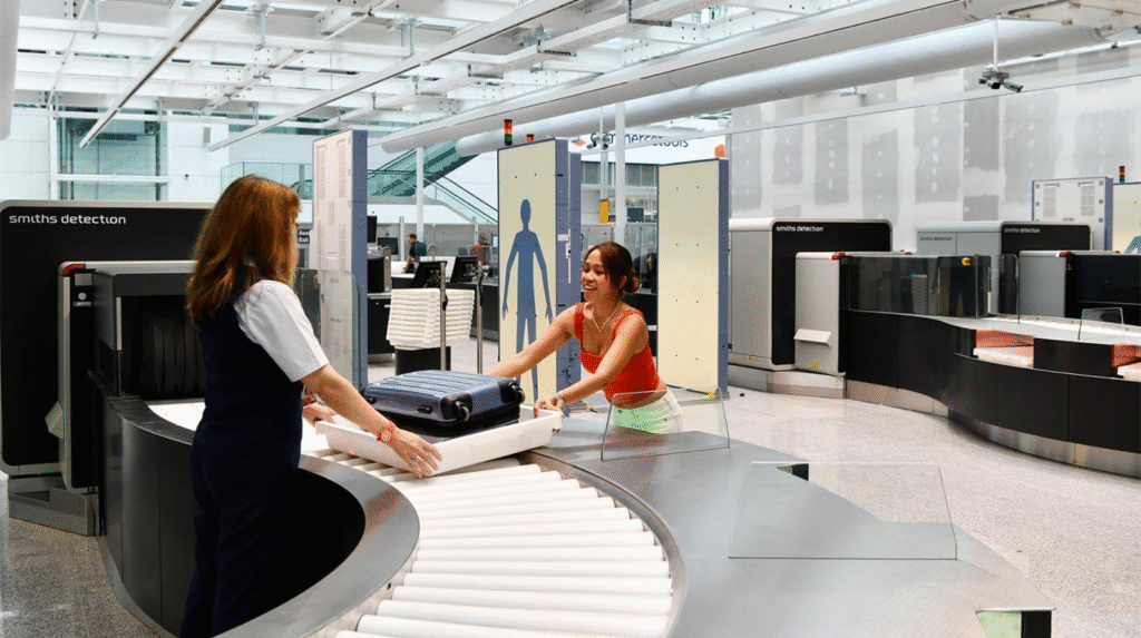 En esta parte, el personal revisará tu equipaje de mano y pasarás por el escáner.